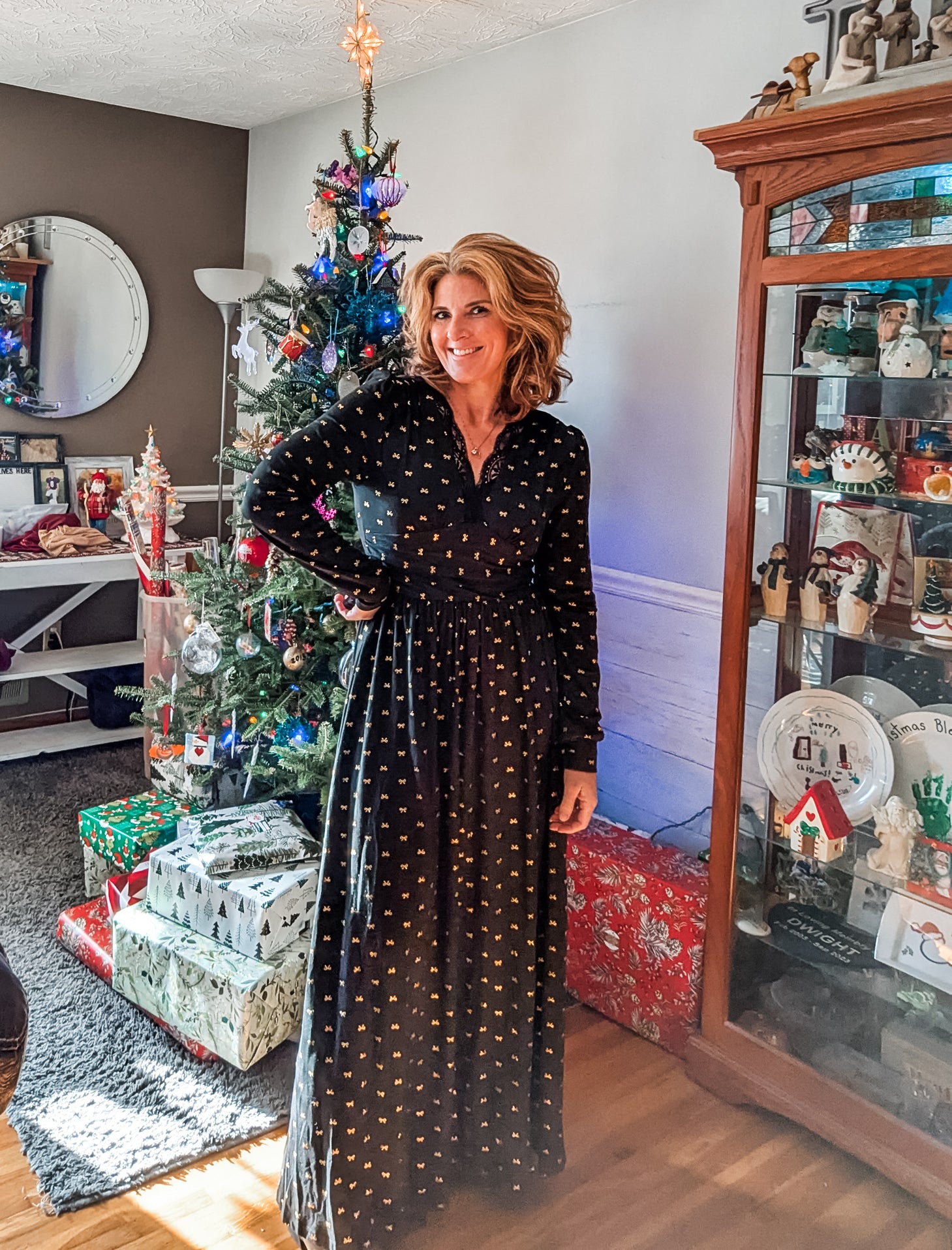 Bow Long Sleeve V-Neck Maxi Dress (S-XL)