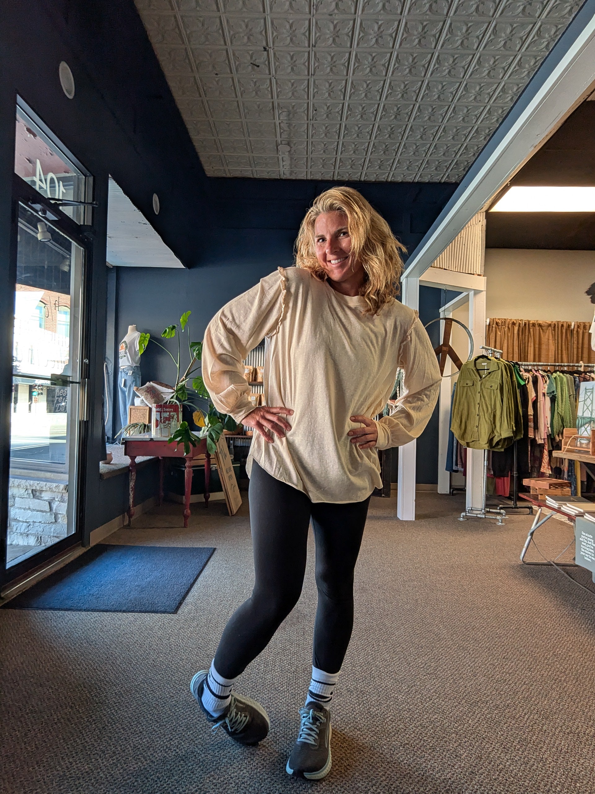 Basic top perfect for layering with ruffled detail and balloon sleeves.